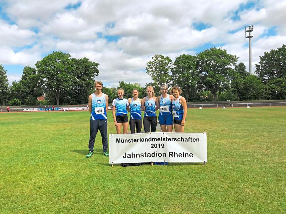 Bei den Münsterlandmeisterschaften im Rheiner Jahnstadion räumten die Leichtathleten kräftig ab. Es gab zahlreiche Titel, sogar die Qualifikationsnorm für die „Deutschen“ wurde erfüllt.