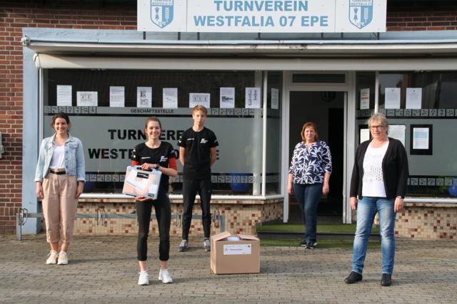 Am 10.05.2021 überreicht Annette Hülemeyer von der Sportjugend im KSB Borken das Starterpaket für das neue J-Team beim TV Westfalia 07 Epe und wünscht den jungen Engagierten im Verein viel Spaß bei der Umsetzung zukünftiger Projekte. Und hierzu gibt es schon jede Menge Ideen beim J-Team. Angedacht sind kooperative Aktionen zur Stärkung des Gemeinschaftsgefühls, z. B. eine Kanu-Tour oder Geocaching.